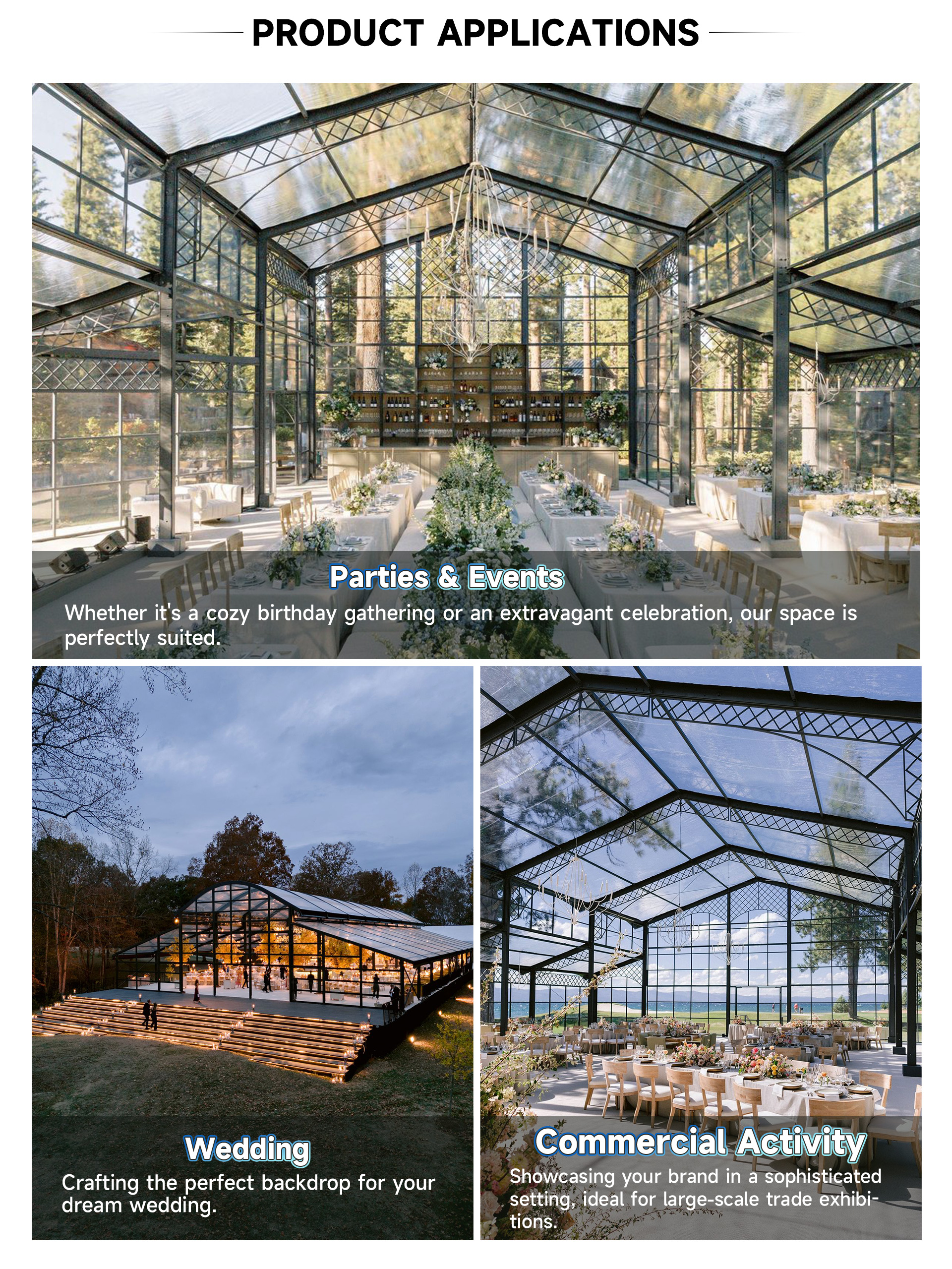 5.Bold and Unique Style:Stand out with the unique shape and bold style of the Aluminum Orangery. Its modern and distinctive appearance adds a touch of sophistication, ensuring your event leaves a lasting impression.