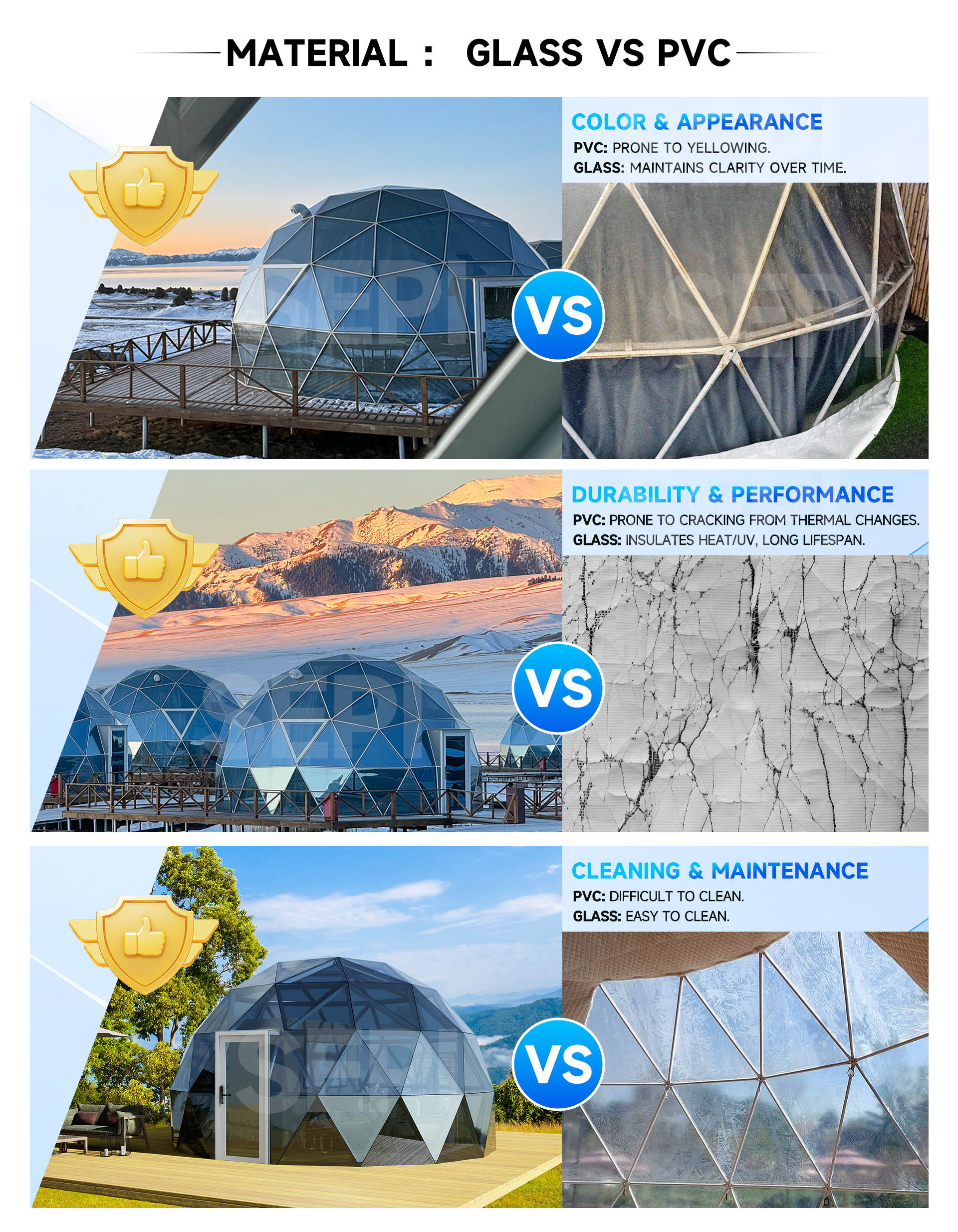 Glass Dome Tent Glass Dome Tent Frame Material : High strength aluminum alloy T6061 Cover Material : Blue mirror tempered glass, material and color optional Size :Diameter 3m-60m Support customized Features : Water proof,uv-resistance,fire ratardant(DIN4102,01,M2) Name Email Message Send
