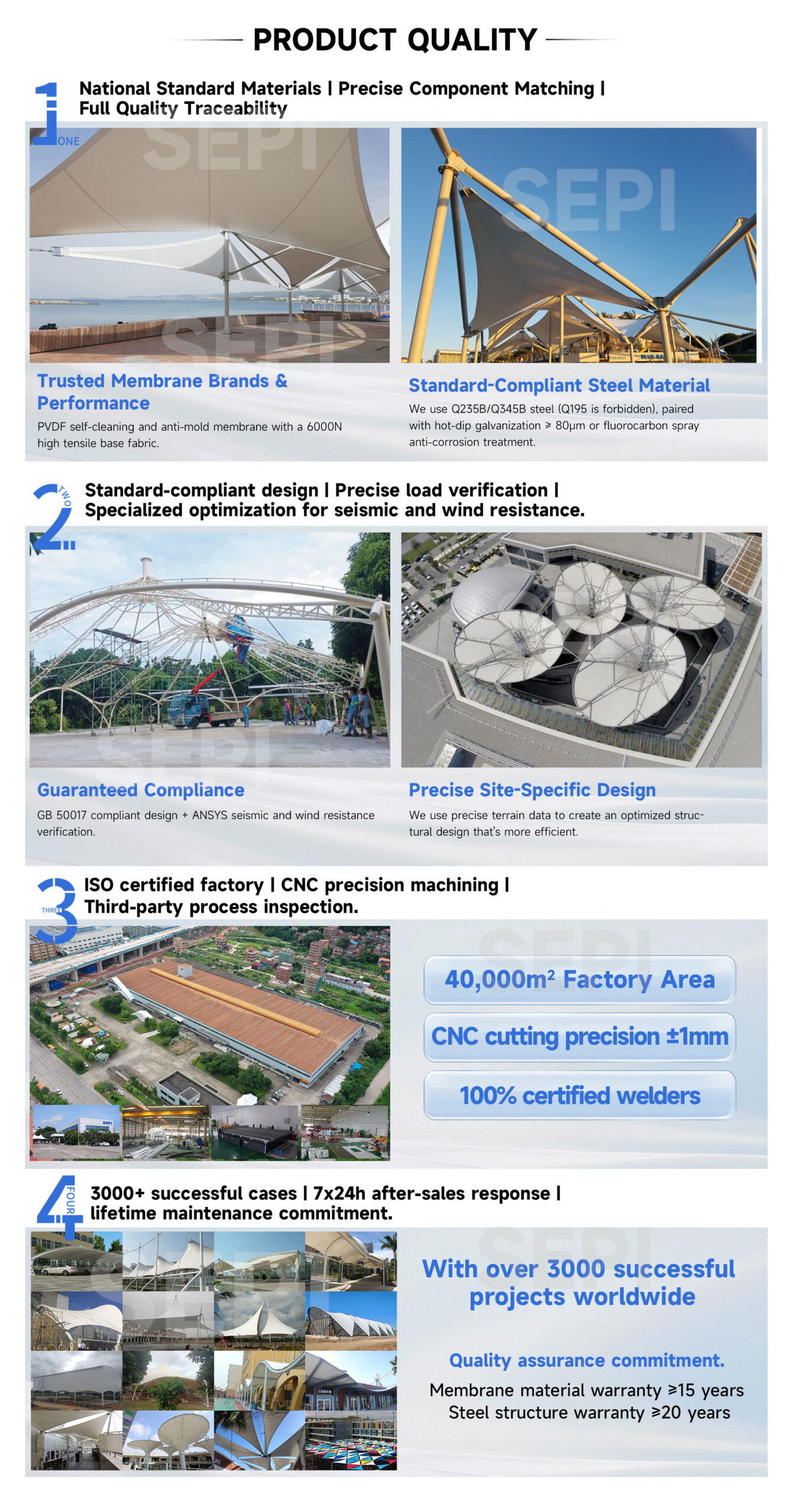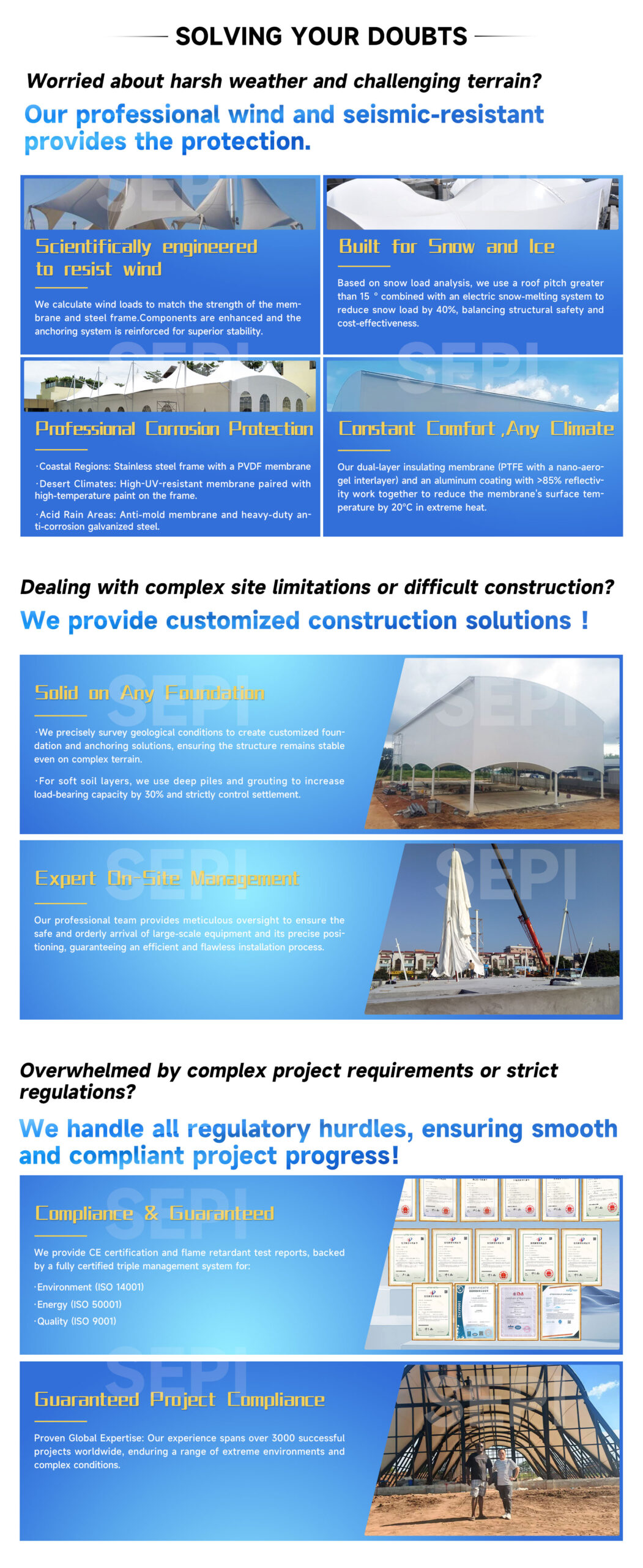 Fabric cover : 1100g/㎡ PVDF White Membrane
