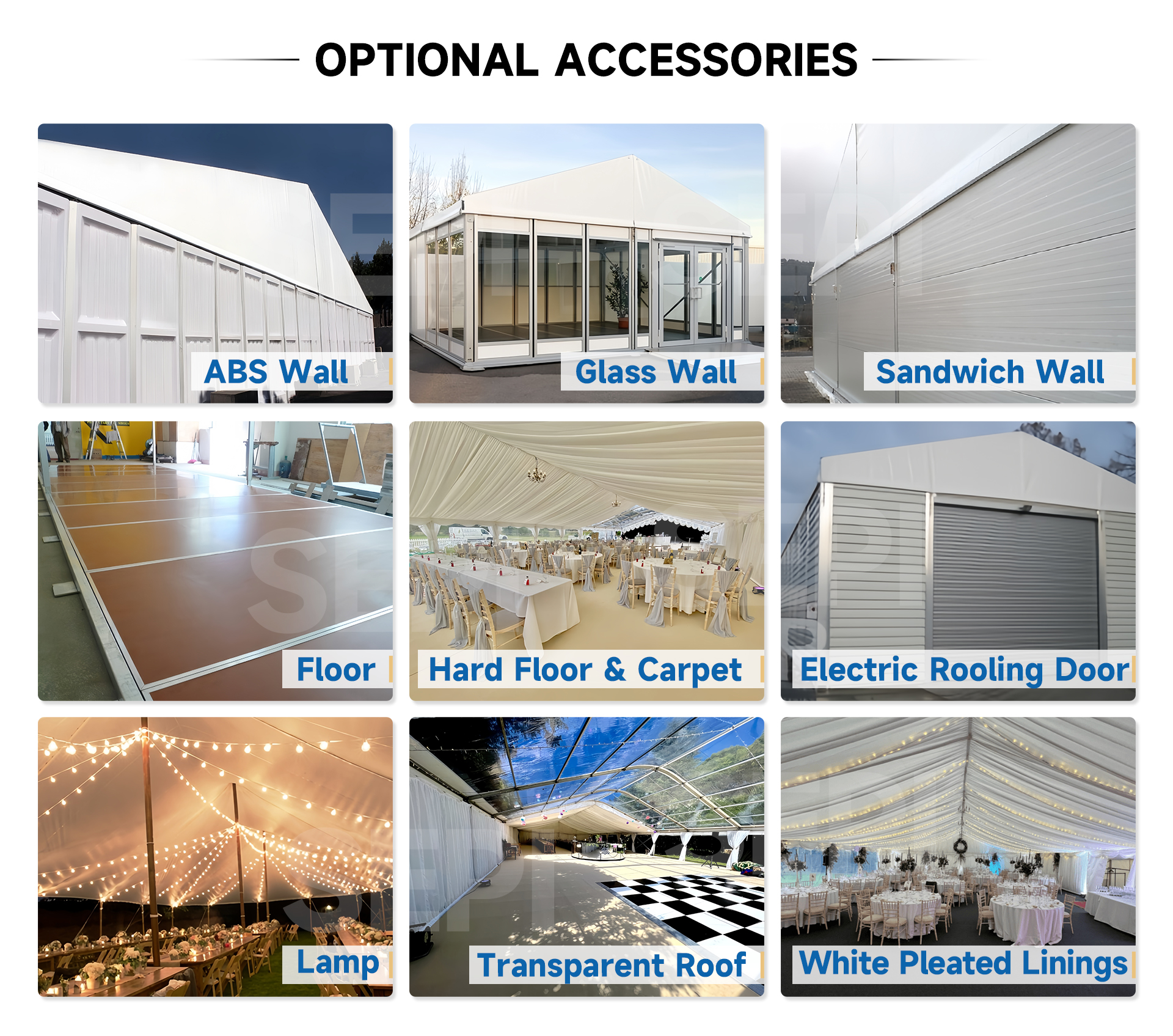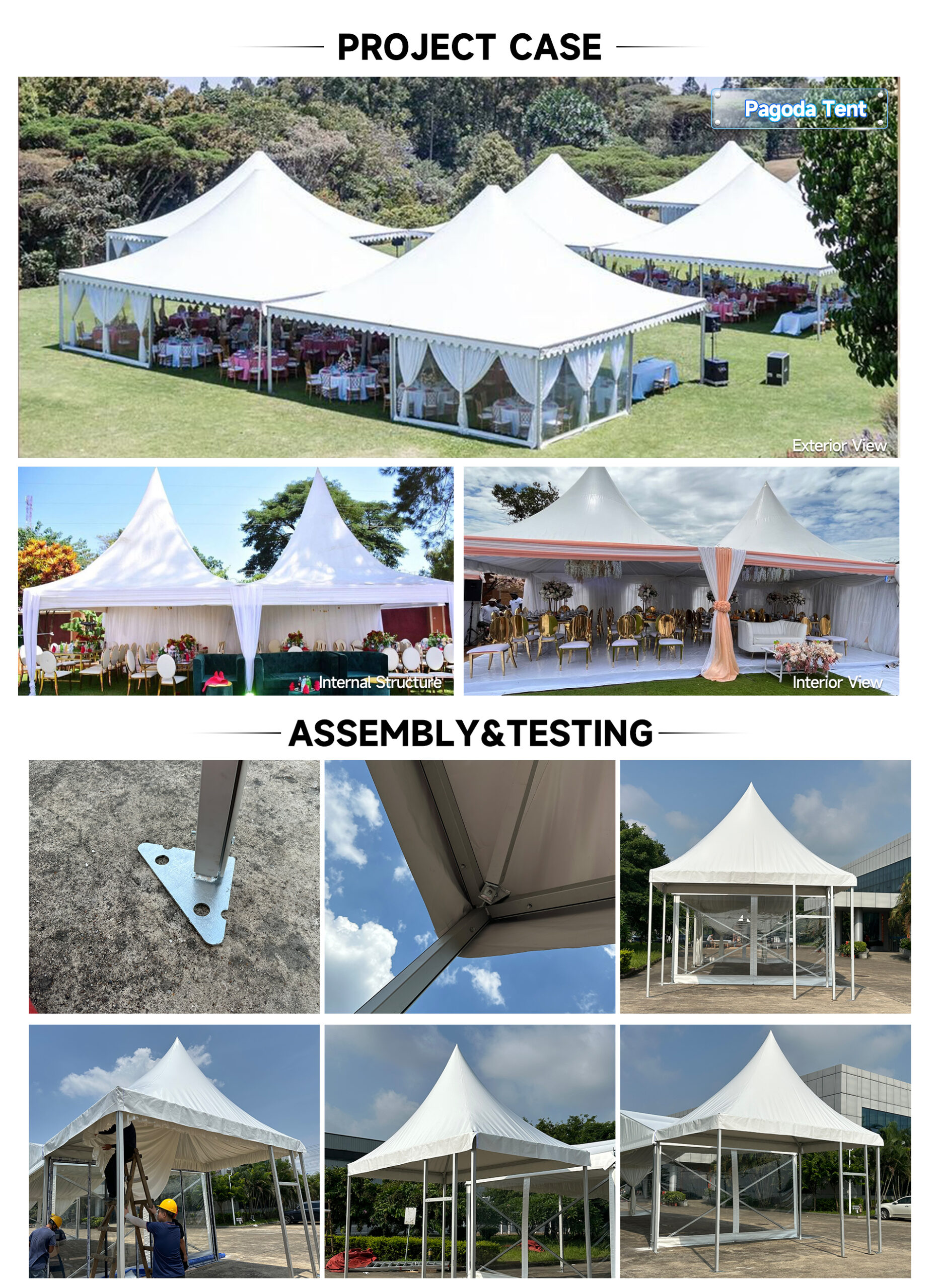 Pagoda Tent Pagoda Tent Frame material : High-strength Aluminum Alloy 6061/T6. Fabric cover : 850g/㎡ Selected White PVC tarpaulin Sidewall :PVC Wall, Glass Wall, ABS Wall, Sandwich Wall Service Life :More than 15 years Name Email Message Send